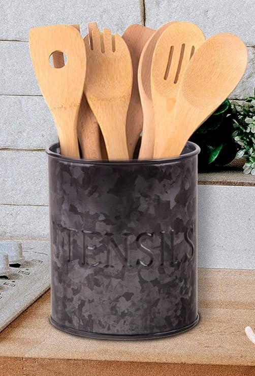 Kitchen Accessories Black Galvanized Embossed Utensil Crock