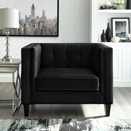 Rin Black Velvet Club Chair Or Sofa Tufted Square Arms Tapered Legs Modern Contemporary Walmart Com Walmart Com