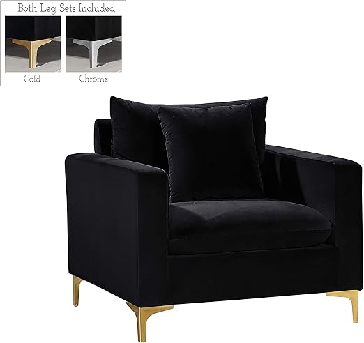 Amazon Com Meridian Furniture 633black C Naomi Collection Modern Contemporary Velvet Upholstered Chair With Stainless Steel Base In A Rich Gold Or Chrome Finish