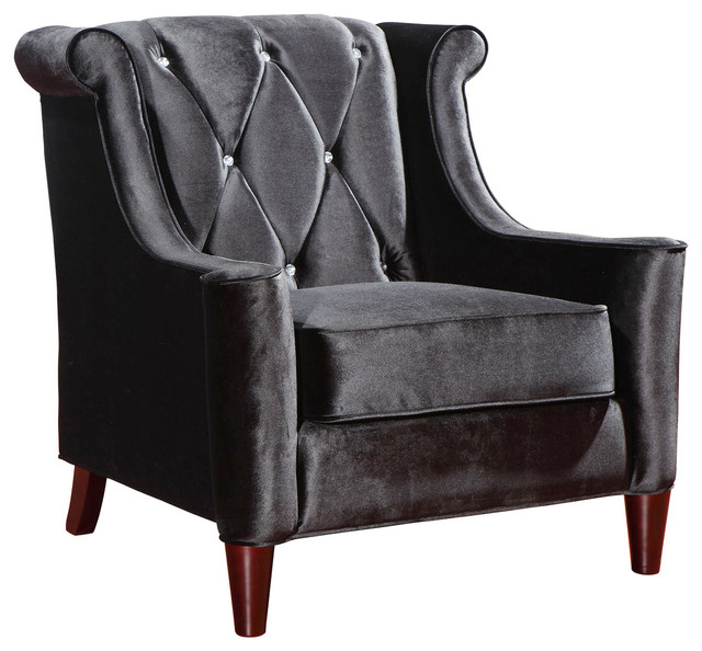 Barrister Chair Velvet With Crystal Buttons Transitional Armchairs And Accent Chairs By Armen Living