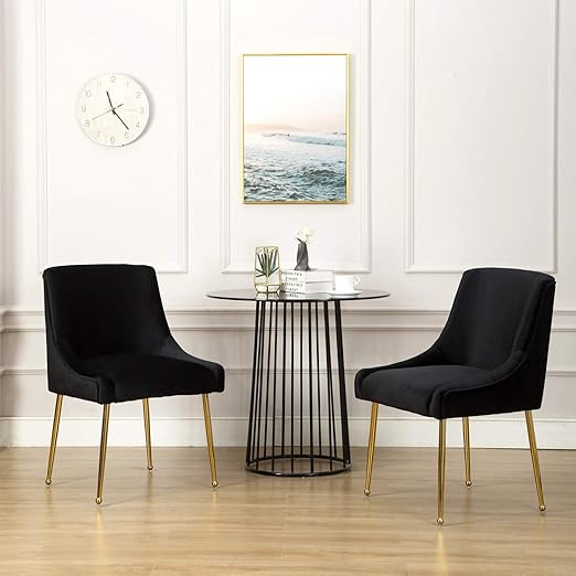 Black Velvet Mid Century Accent Dining Chair Gold Legs Set Of 2