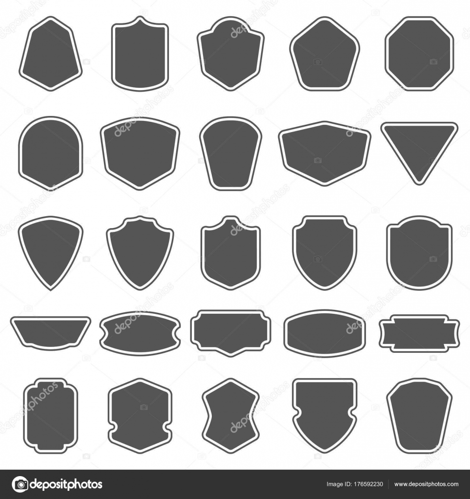 Set Of Blank Empty Dark Shields Shield Badge Shapes Vintage