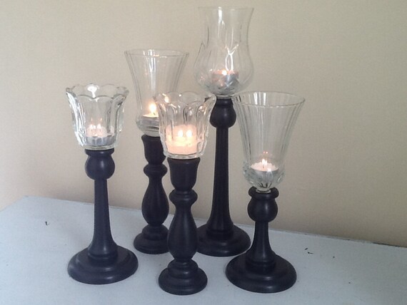 Five Black Candlesticks Black Votive Holder Black Tea Etsy