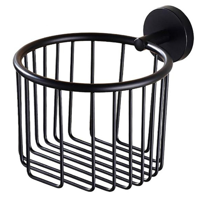 Toilet Holder Black Wall Mounted Multifunction Tissue Basket Roll