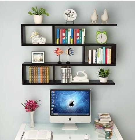 Black Wall Mounted Storage Shelf Bookcase Decor Display Shelves