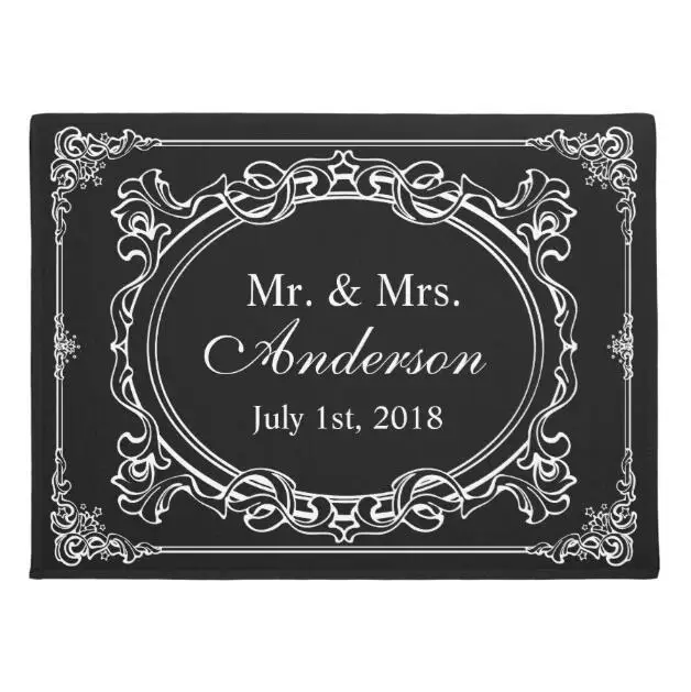 Elegant Black White Mr Mrs Welcome Mat Vintage Classic Floral
