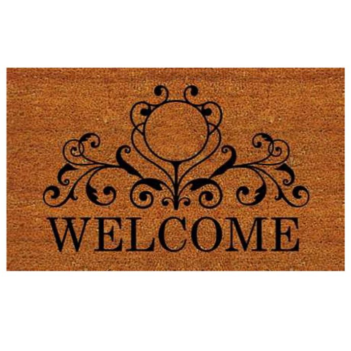 Black Welcome Non Slip Coir Doormat