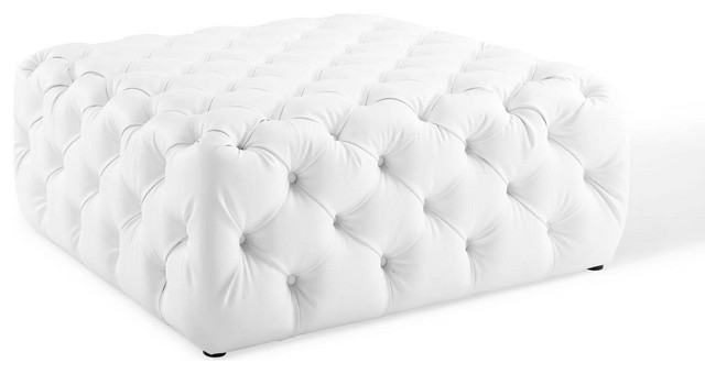 Anthem Tufted Button Large Square Faux Leather Ottoman White