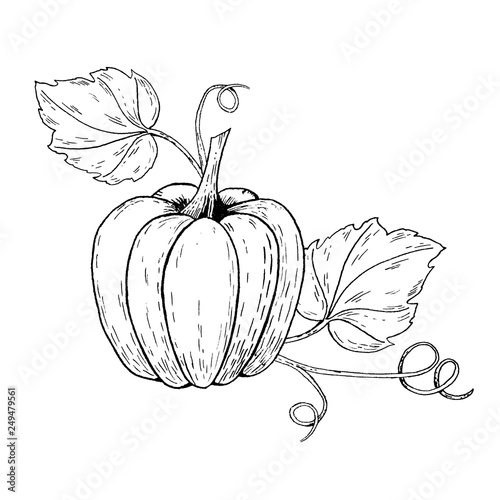 Pumpkin Graphic Bush Plant Black White Isolated Sketch