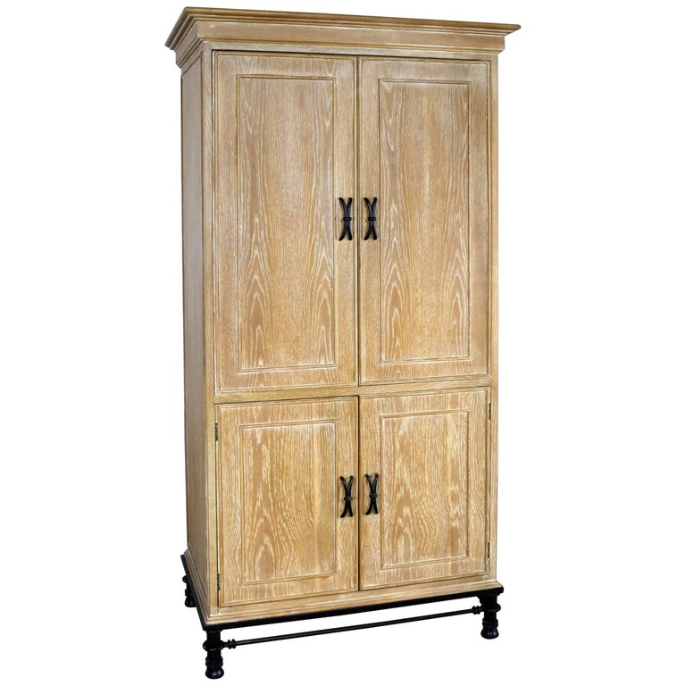 Lane Tall Cabinet In White Washed Oak On Black Steel Base At 1stdibs