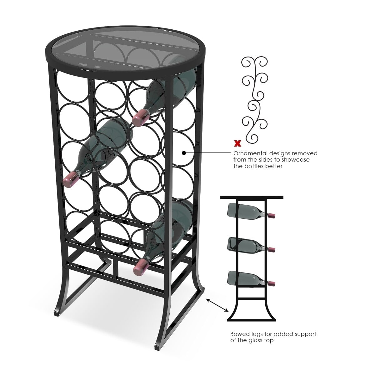 Free Standing Wine Rack Furniture Floor Black Table Storage Bottle