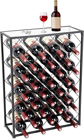 Display4top 32 Bottle Display Wine Rack With Glass Table Top