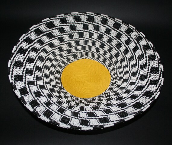 African Telephone Wire Bowl Zulu Basket Black White Yellow Etsy