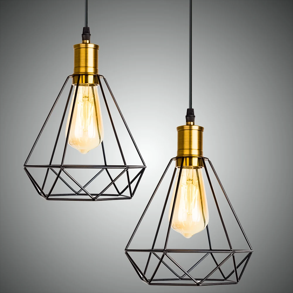 2 Pack E26 Vintage Metal Cage Pendant Lamps Lighting Chandelier