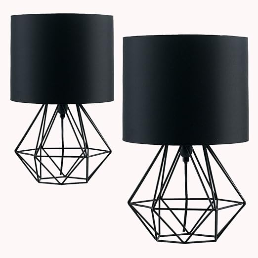 Le Geometric Retro Style Wire Cage Table Lamp Bedside Light Black
