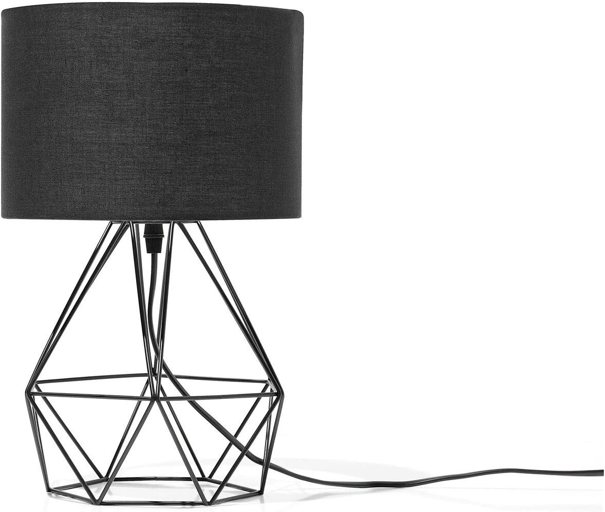 Beliani Contemporary Table Lamp Metal Black Wire Open Cage Fabric