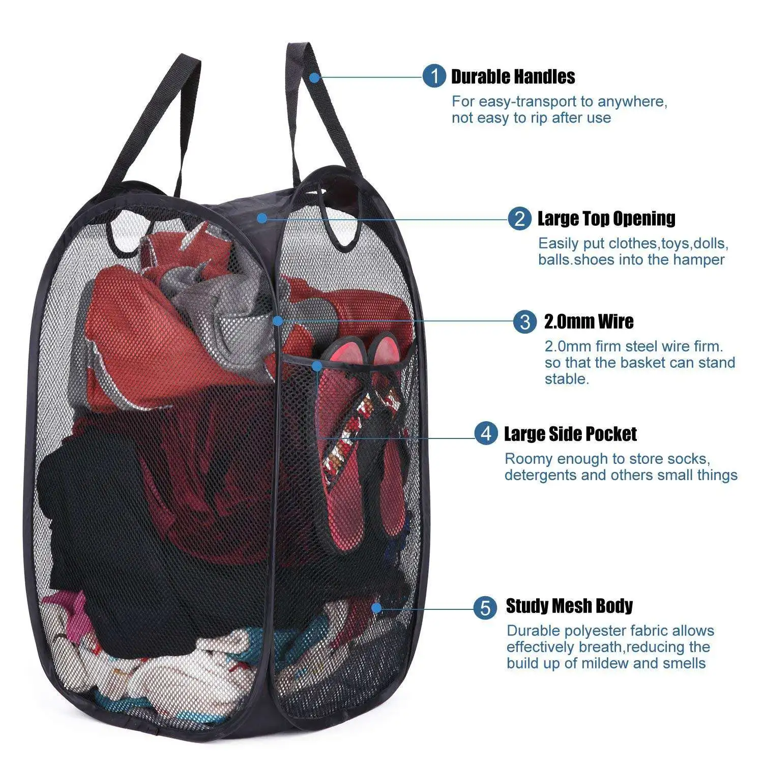 Black Pop Up Laundry Hamper Laundry Bag With Side Pocket Mesh