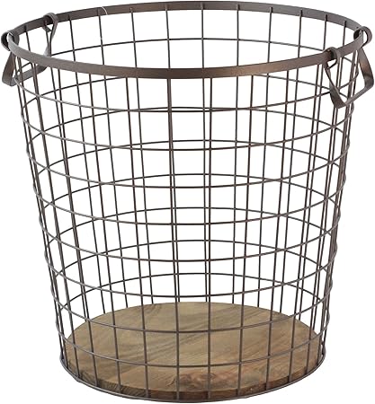 Goldbearuk Wooden Bottom Black Wire Mesh Modern Style Laundry Bin