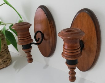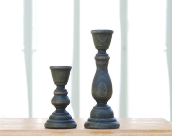Pair Ebony Candlestick Vintage Dark Solid Wood Candle Holders