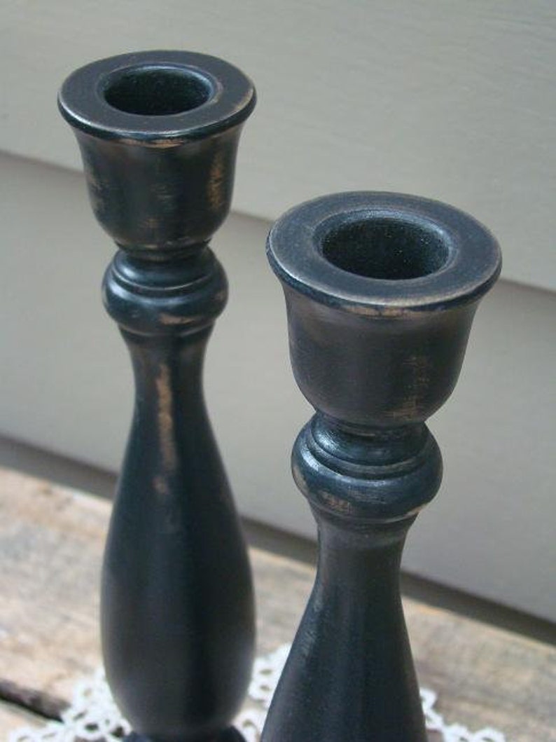 Primitive Shabby Cottage Chic Black Wood Candlesticks Rustic Etsy