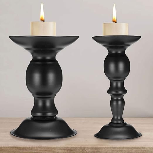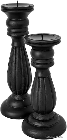 Vintage Style Black Wooden Candlesticks Pillar Candle Holders 10