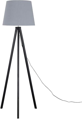 Black Wooden Tripod Floor Lamp Charcoal Shade