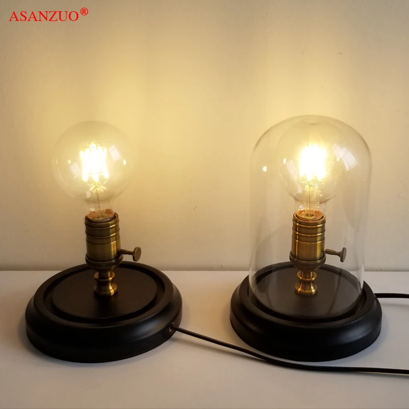 Loft Vintage Industrial Glass Black Wood Desk Lamp Retro Edison Bulb Wooden Base Led Table Lights Table Lamps Aliexpress