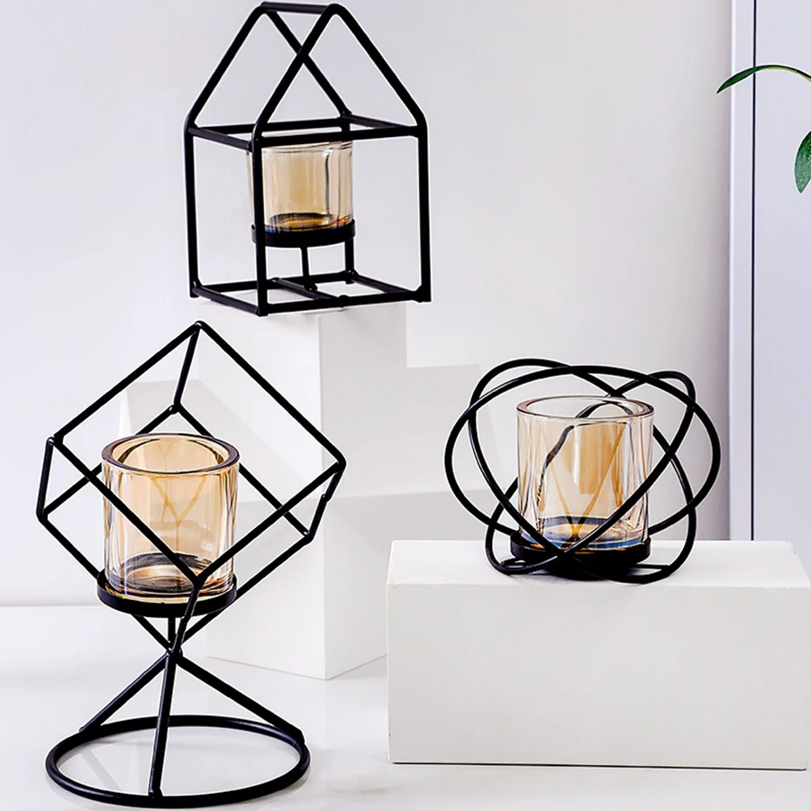 Nordic Style Candle Holder Black Geometric Candlestick Wrought