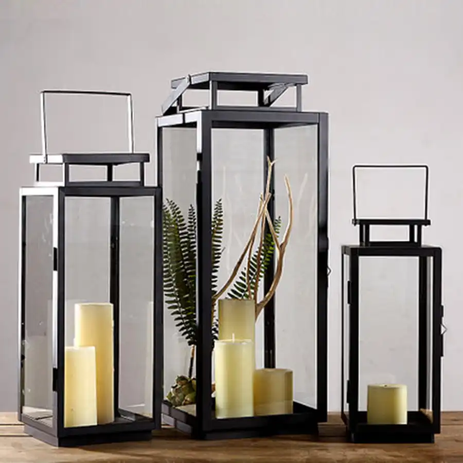 Big Wrought Metal Iron Candle Lantern Decoration Table Centerpiece