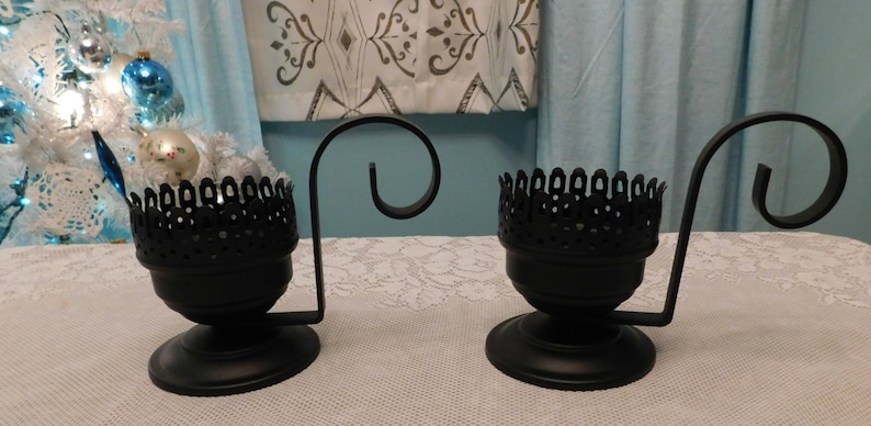 Vintage Black Wrought Iron Candlestick Holders Pair With Etsy
