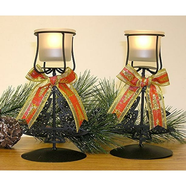 Christmas Candle Holder Set Of 2 Black Wrought Iron Metal Stands