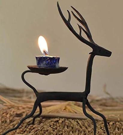 Geometric Elk Tealight Candle Holder Black Golden Wrought Iron