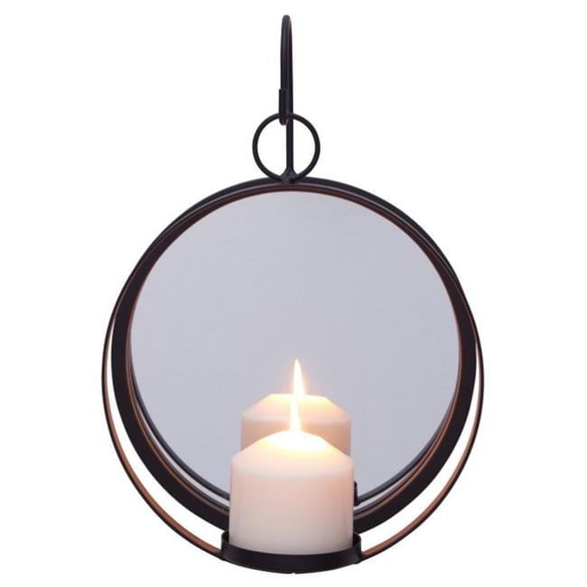 Danya B Se1994 Round Wrought Iron Pillar Candle Sconce With Mirror