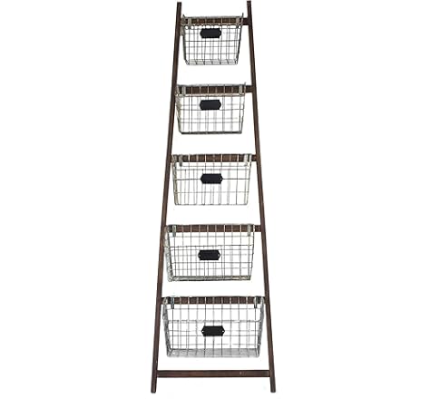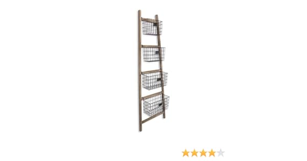 Amazon Com Creative Co Op Wood Ladder With 5 Wire Baskets