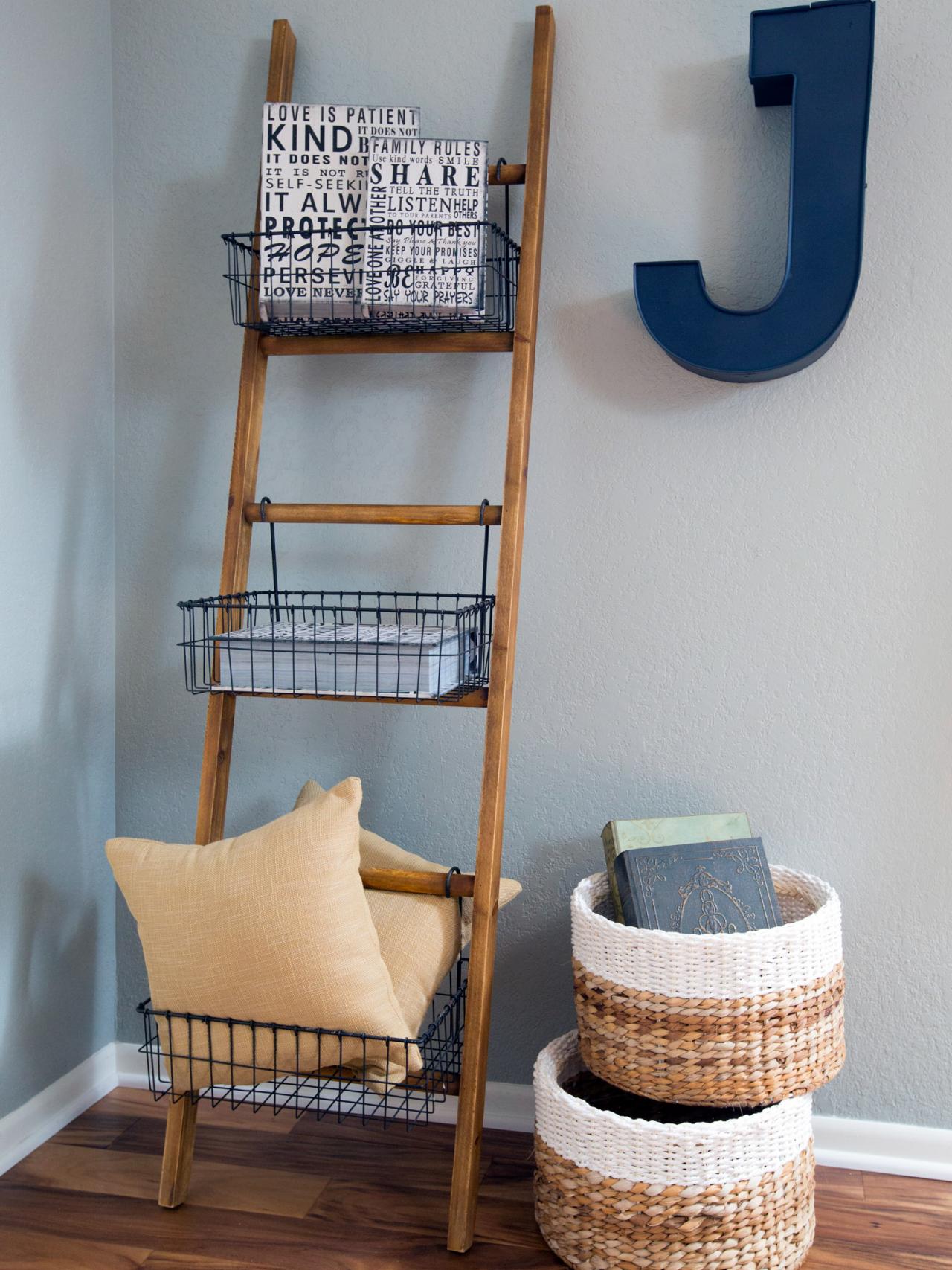 Rustic Storage Basket Ladder Kirklands