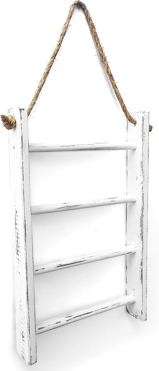 Small Decorative Wall Ladder For Blankets Bookcase Art White