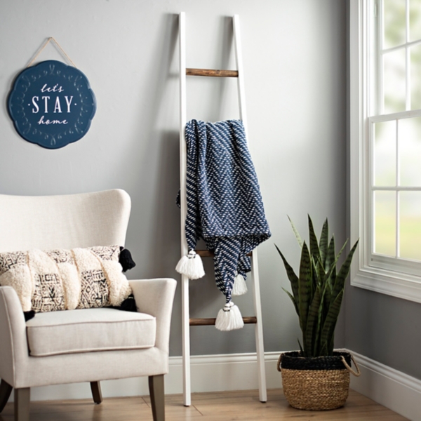 Amazon Com Mygift Wall Leaning Vintage White Wood Ladder Blanket