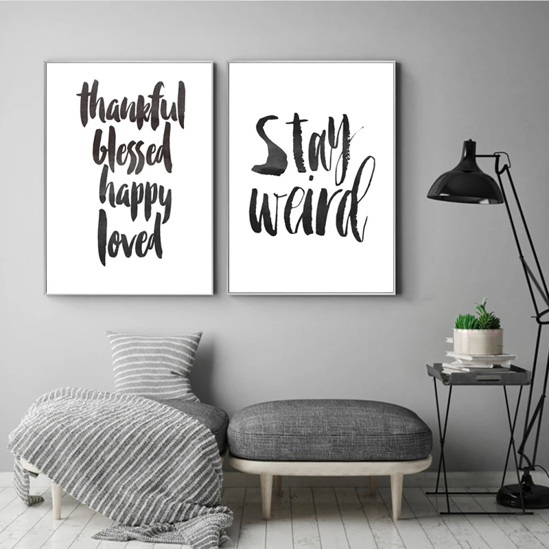 Minimalist Positive Wall Art Inspirational Thankful Blessed Canvas