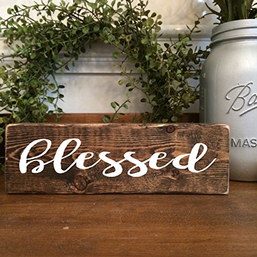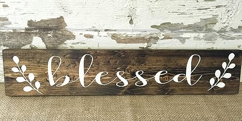 Amazon Com Blessed Wooden Rustic Script Sign Farmhouse Wall