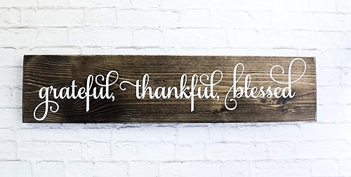 Dark Walnut Cursive Grateful Thankful Blessed Wooden Sign Rustic