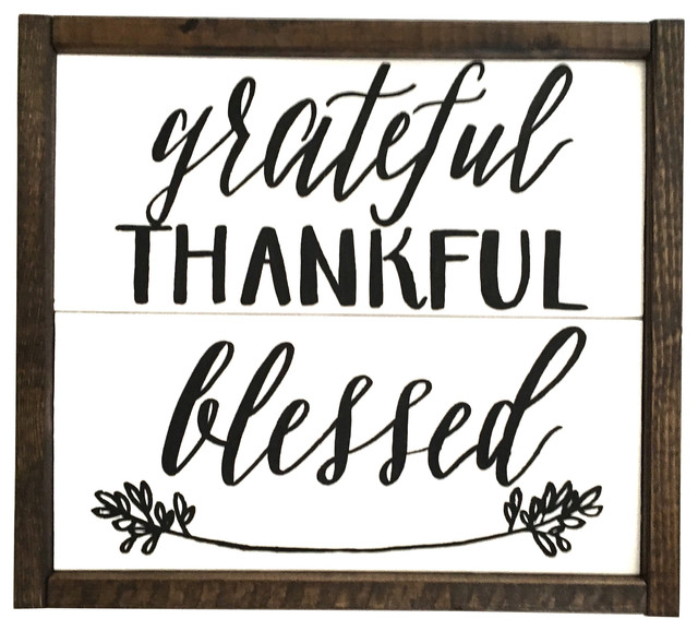 Grateful Thankful Blessed Handcrafted Wooden Sign Contemporary