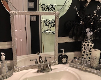 White Rhinestone Bling Wall Mirror White Bling Wall Mirror Etsy