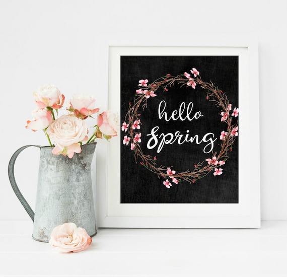 Hello Spring Print Cherry Blossom Art Rustic Wall Art Etsy