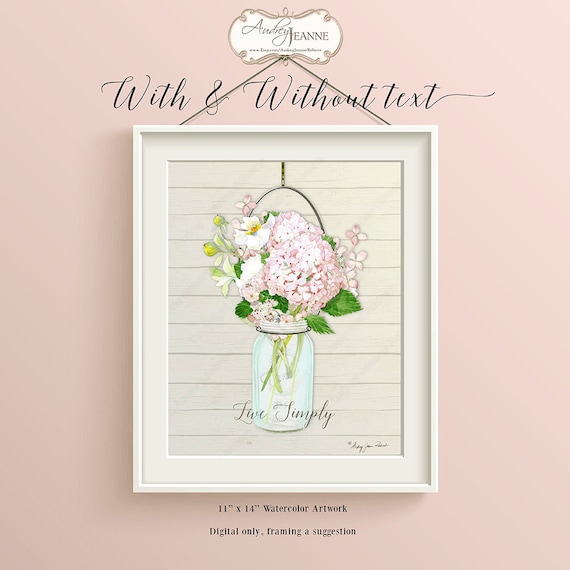Watercolor Mason Jar W Blush Pink Hydrangeas White Poppies Etsy