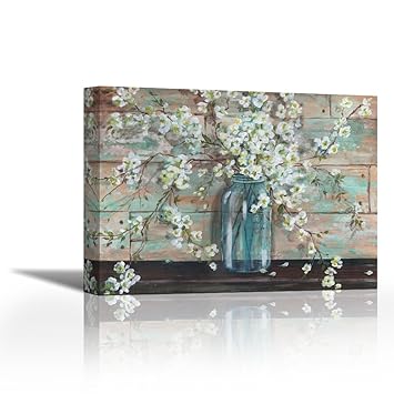 Amazon Com Blossoms In Mason Jar Canvas Wall Art Print 30 X20 X1 25 Posters Prints