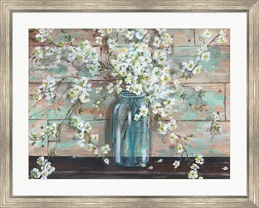 Amazon Com Blossoms In Mason Jar By Tre Sorelle Studios Framed Art Print Wall Picture Silver Scoop Frame 37 X 30 Inches Posters Prints