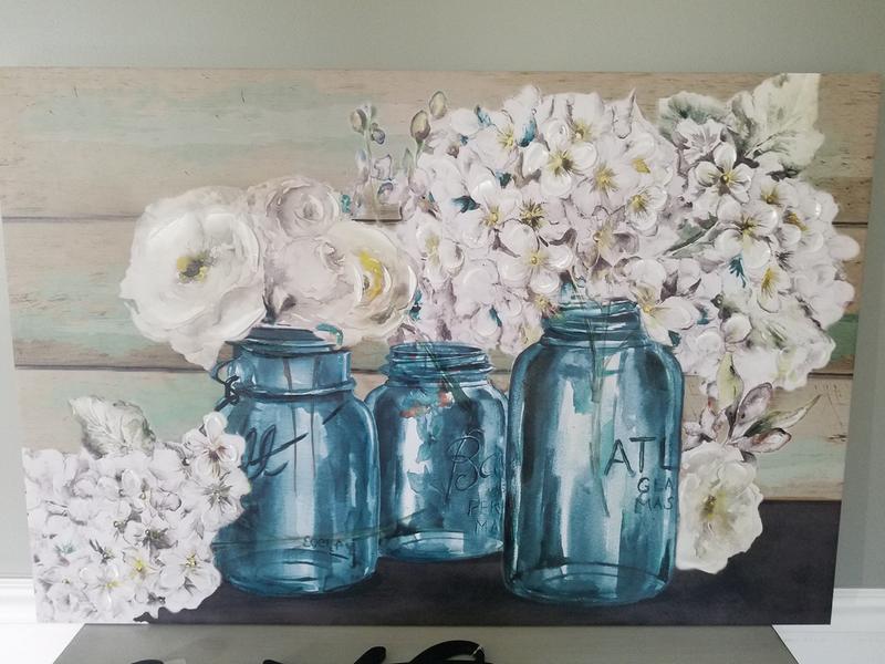 Amazon Com Patton Wall Decor Blooms In Mason Jar Floral Art 24 X 36 Wrapped Canvas 24 X 36 Inch Light Blue Posters Prints
