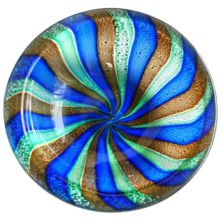 Murano Silver Flecks Pinwheel Stripes Italian Art Glass Decorative