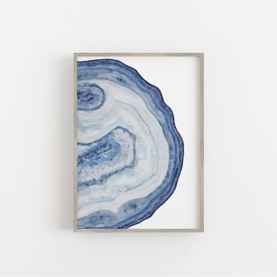 Geode Wall Art Watercolor Print Indigo Blue Agate Printable Etsy