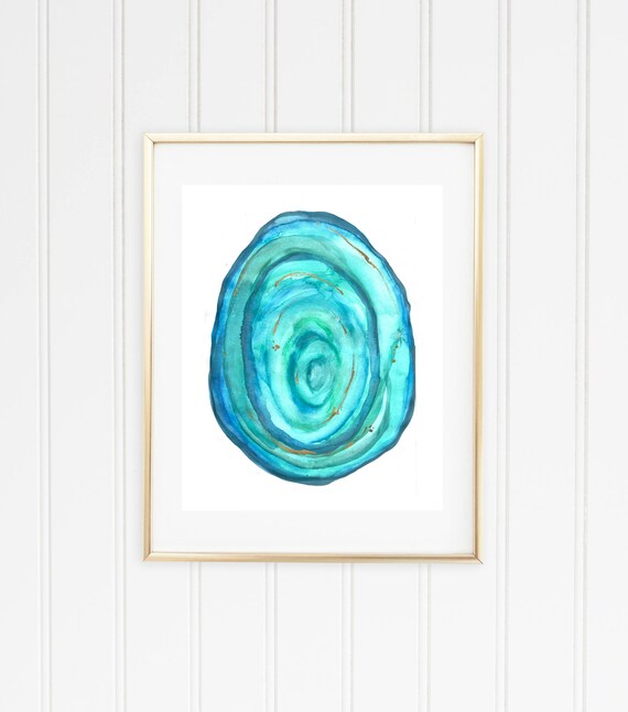Watercolor Painting Blue Agate Art Watercolor Print Crystal Etsy